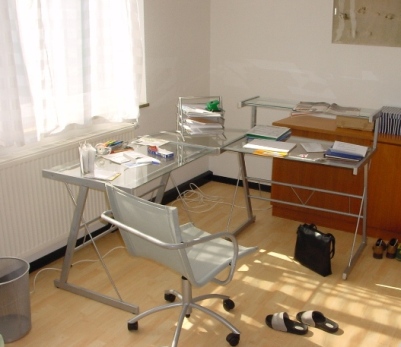 Die einzelnen Zimmer haben zwar eine Grundausstattung (in der Regel Schreibtisch, Stuhl, Schrank, Sideboard), es bleibt aber jedem selbst überlassen, sich sein eigenes Flair aufzubauen. Eine Zwischenlagerung der Bestandsmöbel bis zum Auszug ist problemlos möglich. Sollte jemand auf lindgrüne oder auberginefarbene Tapete stehen, kann er/sie das selbstverständlich nach Gusto anpinseln. Aber klar ist, dass beim Auszug die Tapete wieder weiß sein muss! |